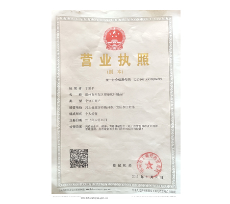 Strong technical force and advanced production technology 霸州市開發區博裕化纖制品廠是一家生產丙綸長絲的大型企業,擁有先進的紡絲生產線,現有技工8名,職工200多名,形成華北地區產量較大、品種較全、技術力量雄厚、生產工藝先進,以生產300D—1800D各種中、高、強丙綸長絲為主導產品